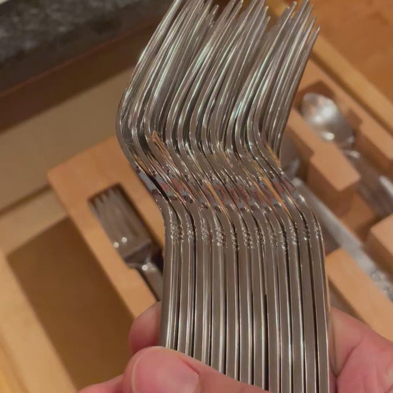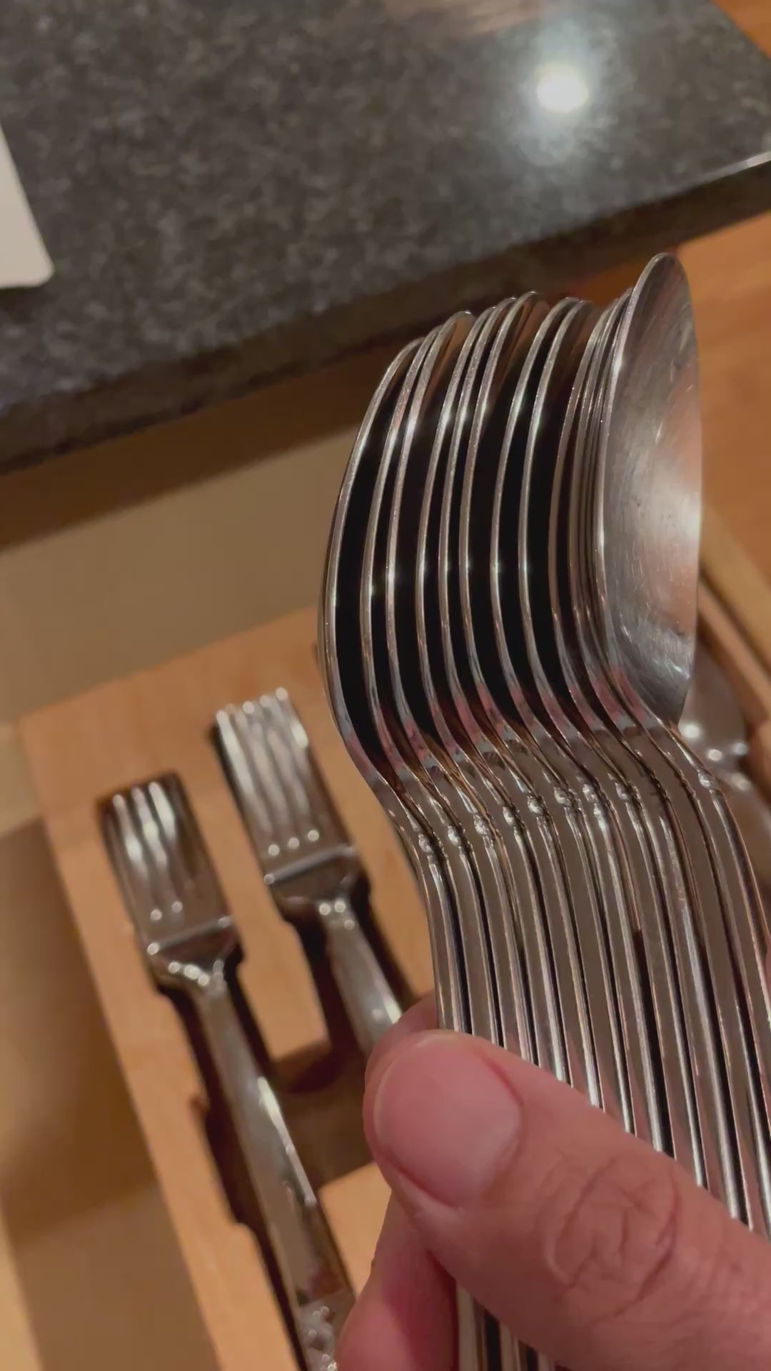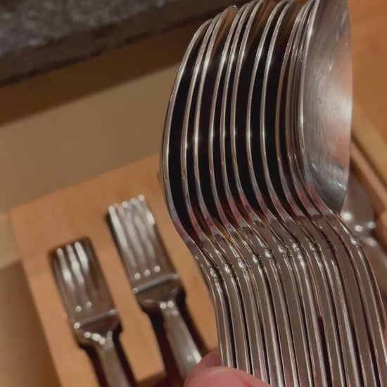 Transform your kitchen with our artisanal cutlery organizer. Handcrafted from exquisite maple wood, our all-in-one drawer organizer gracefully organizes spoons, knives, and forks, fitting 6-8 pieces each. Can also be incorporated into a drawer grid. Experience effortless organization with a hint of opulence.